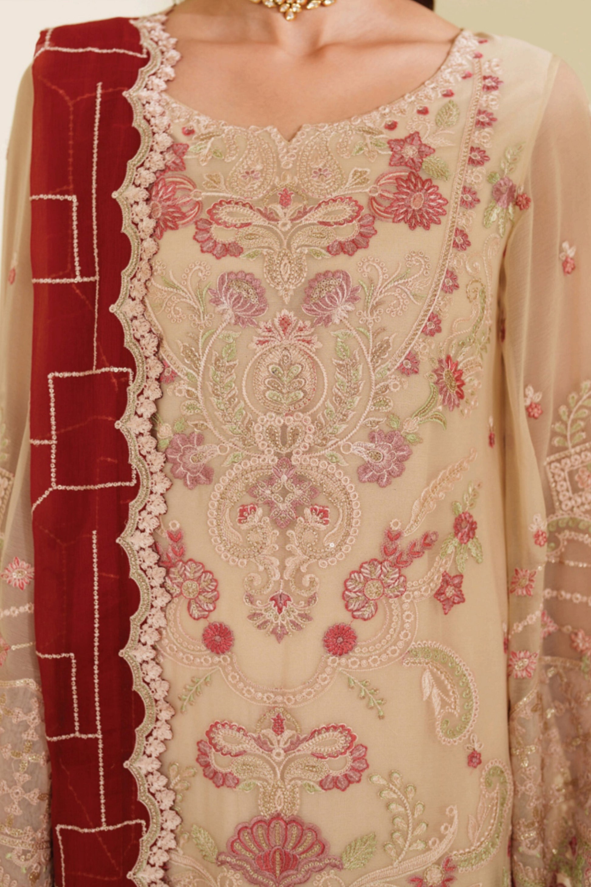 - Embroidered chiffon for dupatta