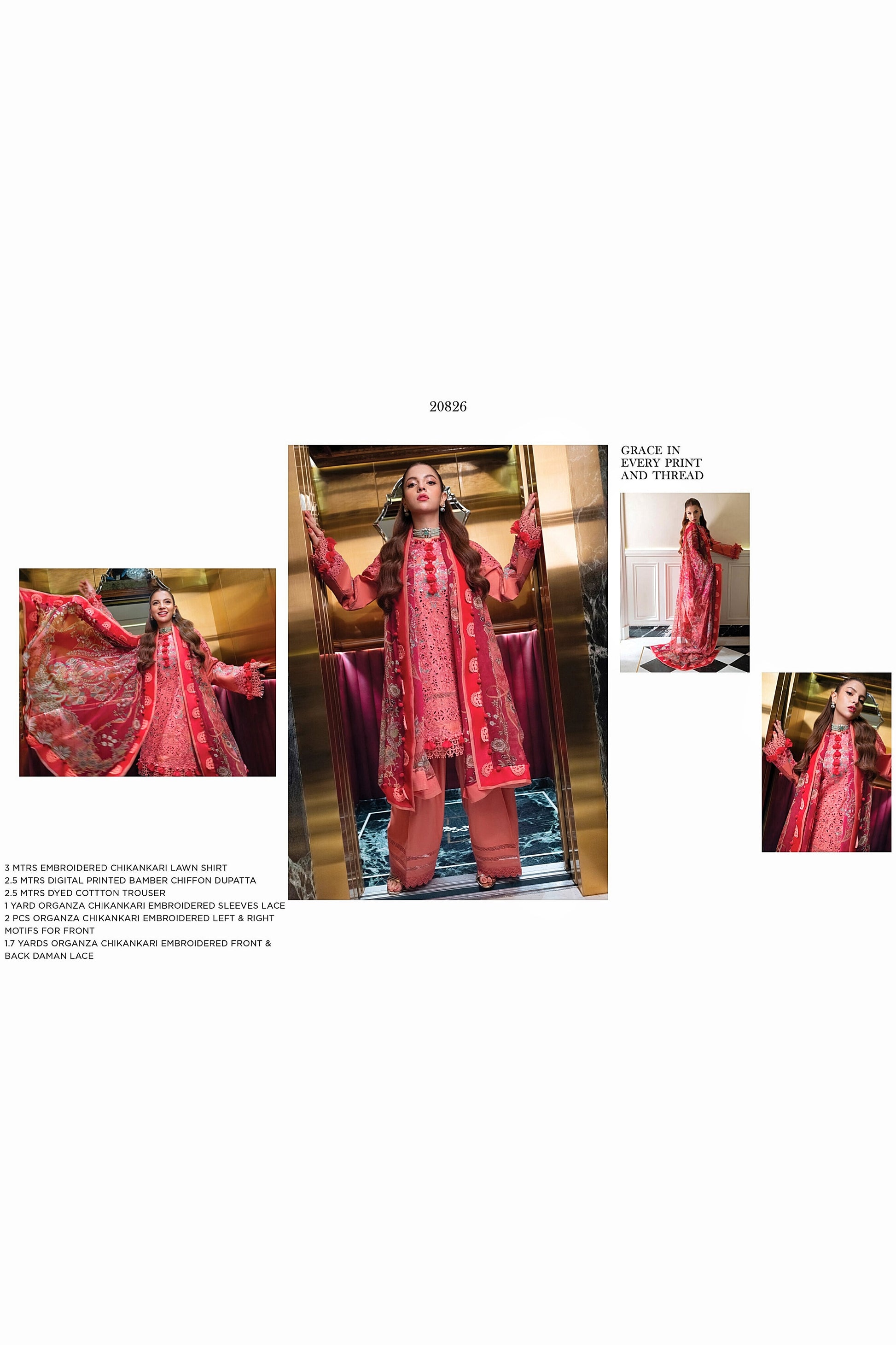 - EMBROIDERED CHIKANKARI LAWN SHIRT - 3 METERS